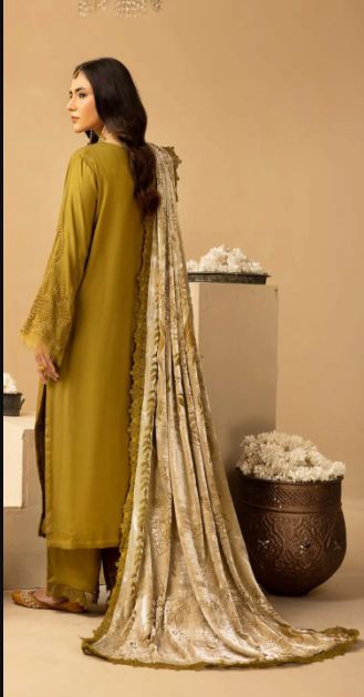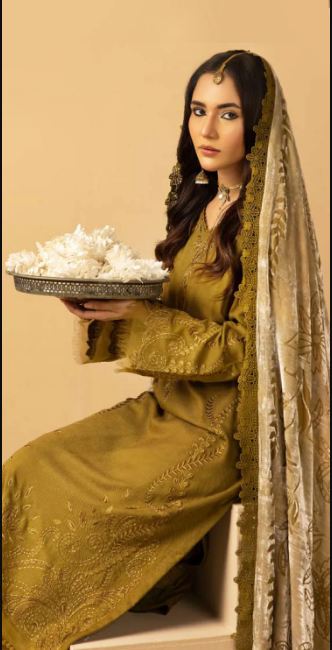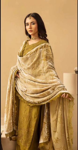 Description: Embroidered Leather Peach Collection With Velvet Palachi Shawl.