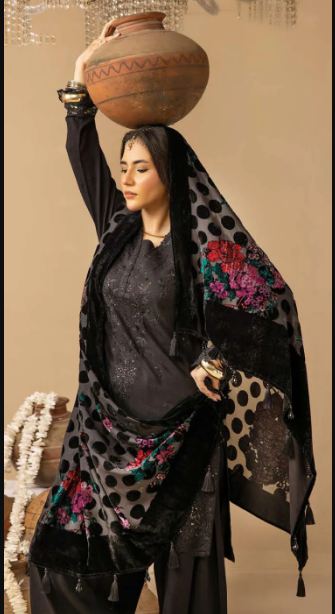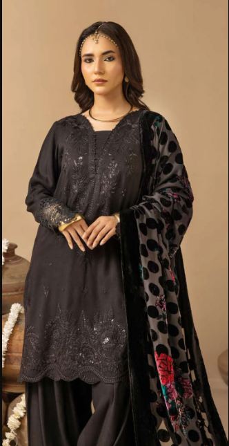 Description: Embroidered Leather Peach Collection With Velvet Palachi Shawl.