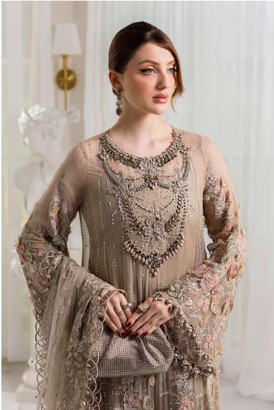 Embroidered Organza Neck With 3D Hand Embellishment & Diamantes