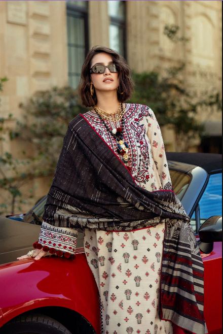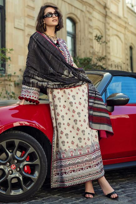 Dreamy Escape, showcases a luxurious jacquard viscose shirt paired with a beautifully crafted viscose jacquard shawl, exuding elegance and sophistication. Adorned with handmade wool thread tassels at the neckline and sleeves, this ensemble adds a unique artisanal touch.