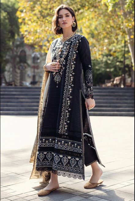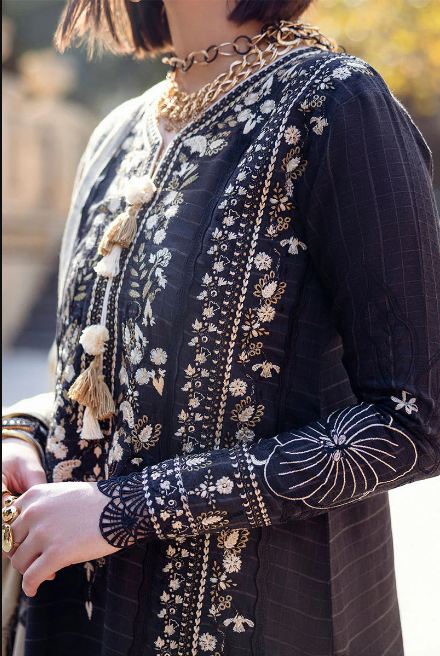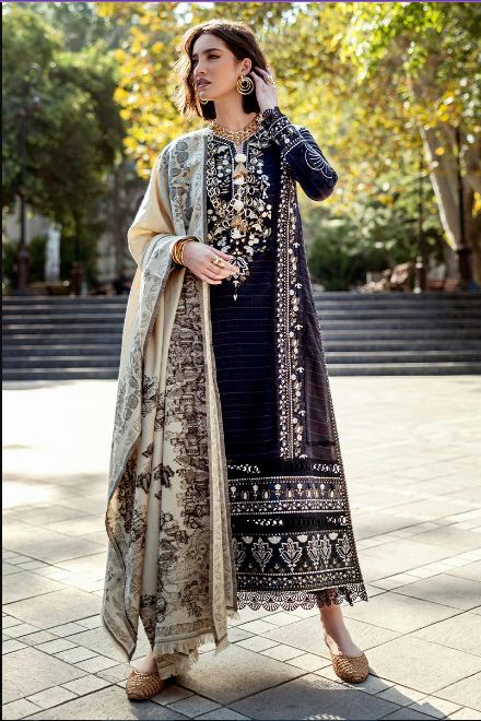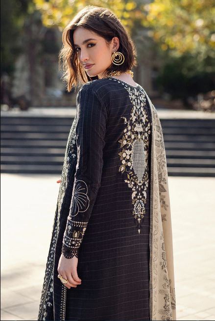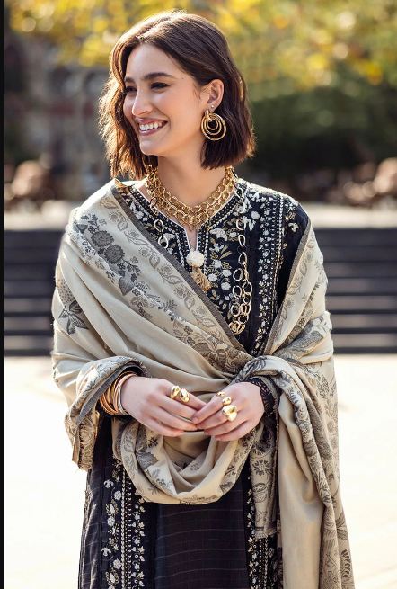 Twisted Affection in striking black features a beautifully embroidered checkered karandi shirt, exuding elegance and sophistication. Paired with a warm woolen shawl, this ensemble is enhanced by delicate crochet lace finishing and handmade wool thread tassels, adding an artisanal flair.